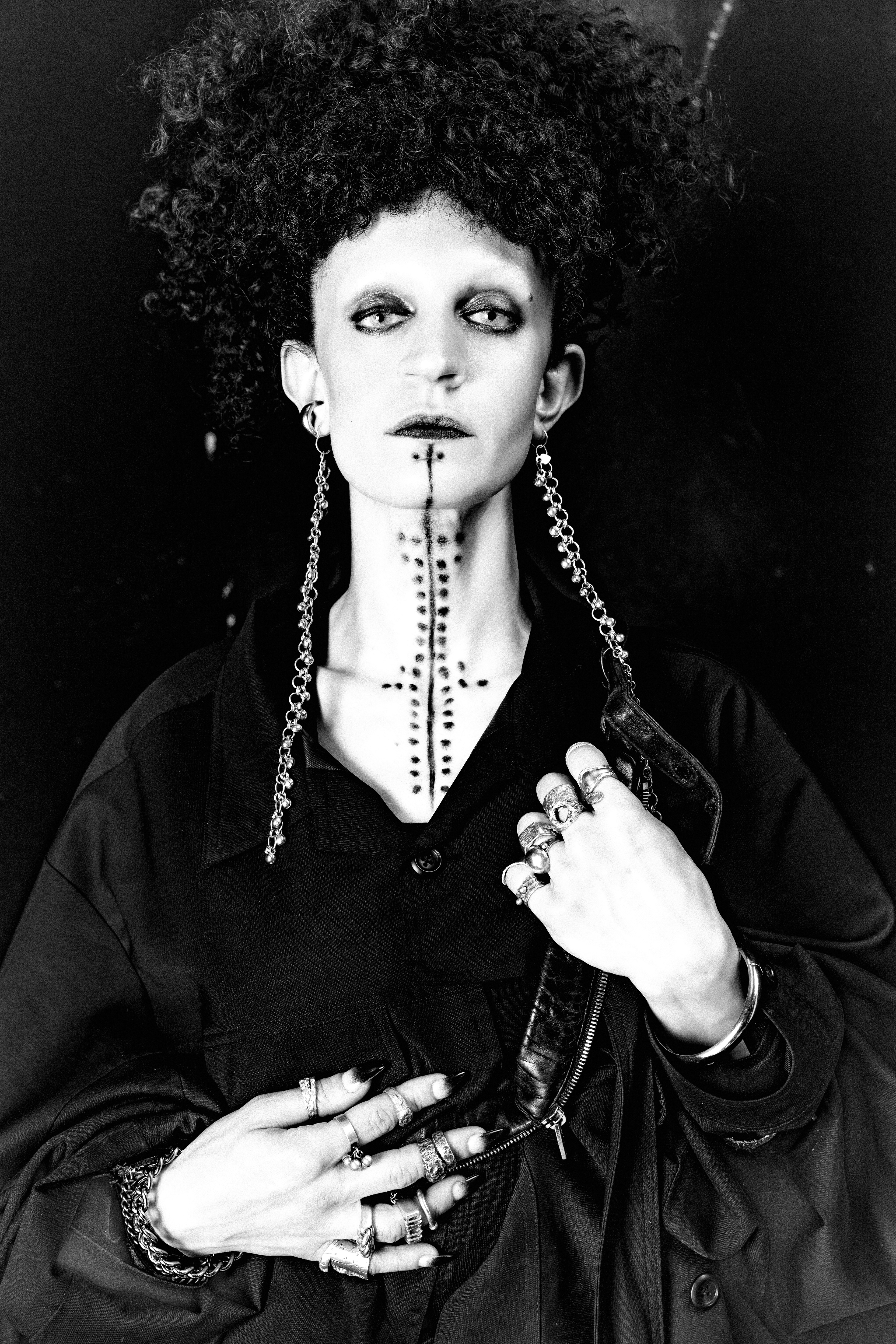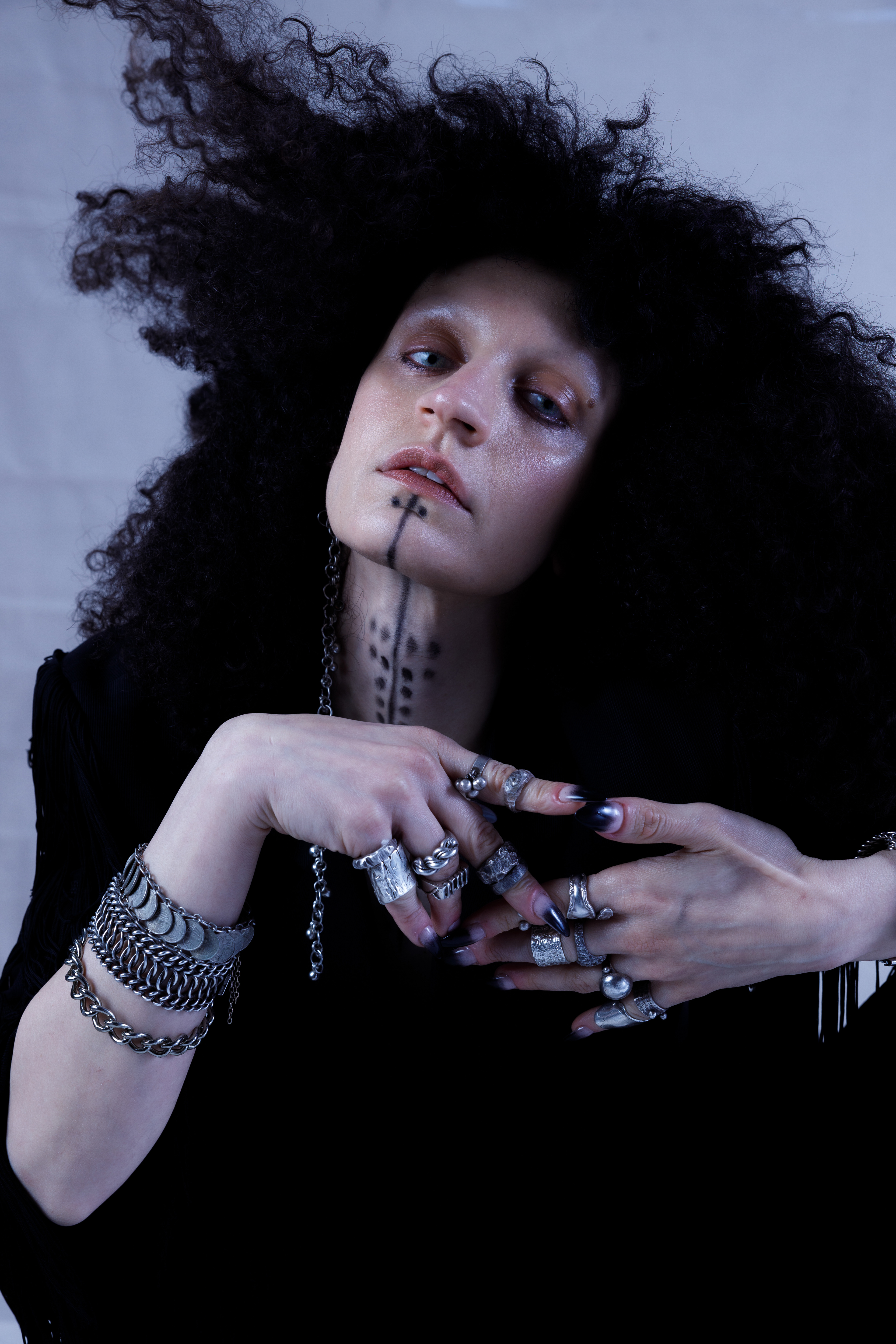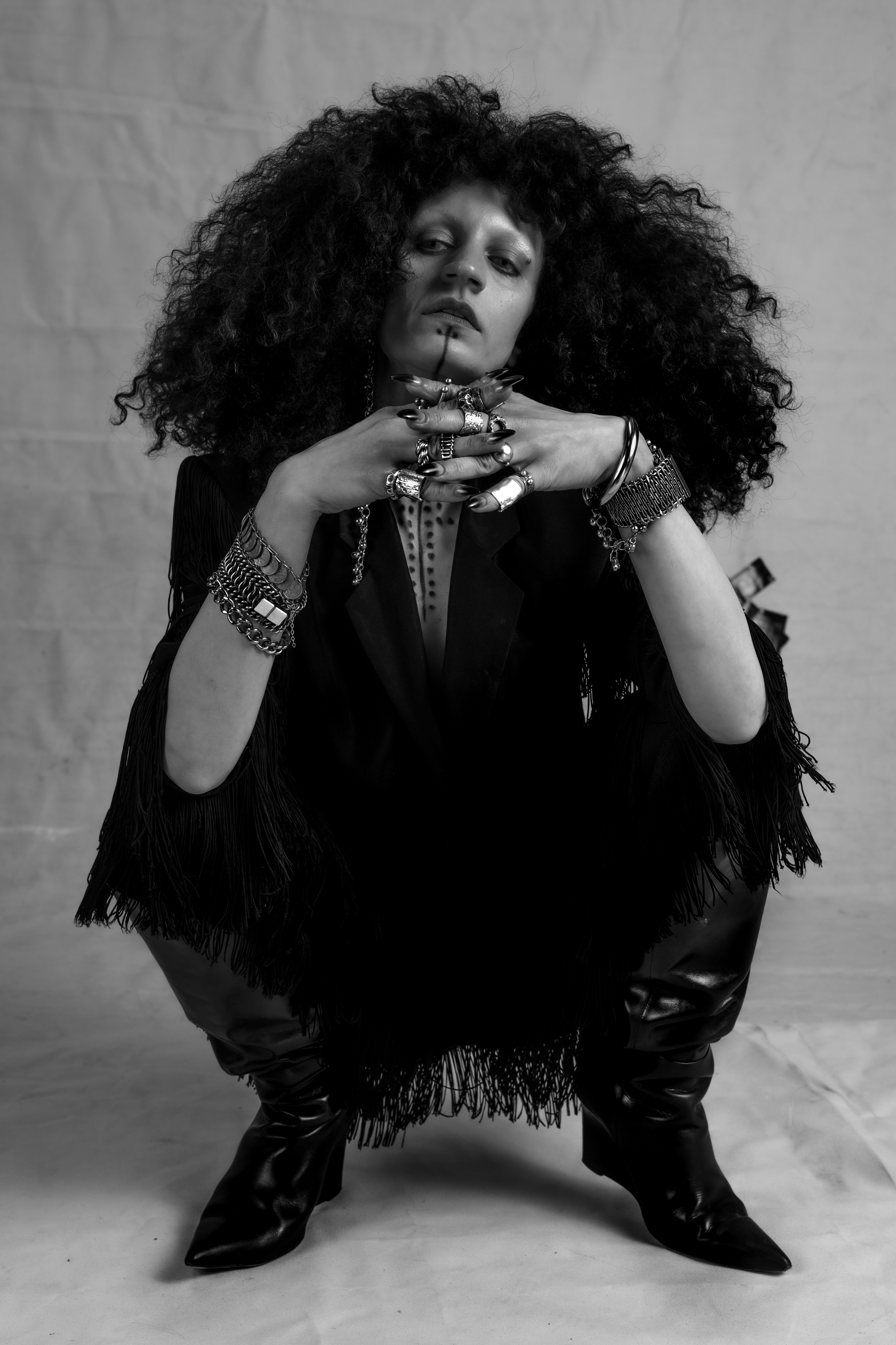 ‘ Growing up between clashing worlds, I often felt like an outsider, like the antagonist in my own story—never fitting neatly into any label. I was inspired by the women like my great grandmother who for generations got these deq tattoos imbued with wishes, fortune, and protection. All these inherited stories and traditions simultaneously felt alien to me. Just as a tattoo is a ritualized act of deploying one’s own chosen identity, I am using this moment to question the significance of identity and heritage. I am not that I am not’ MAIA ABBAS
